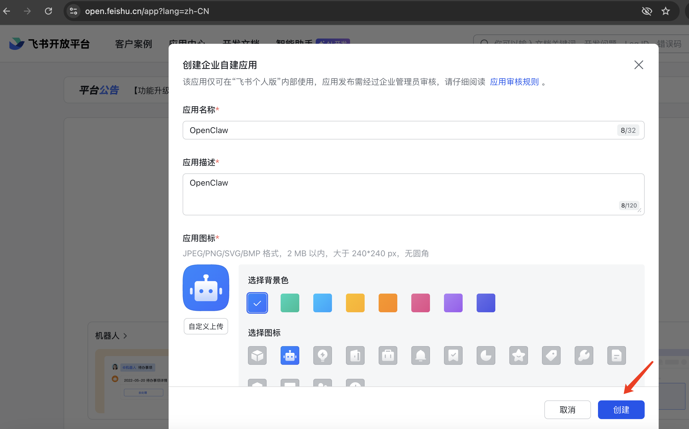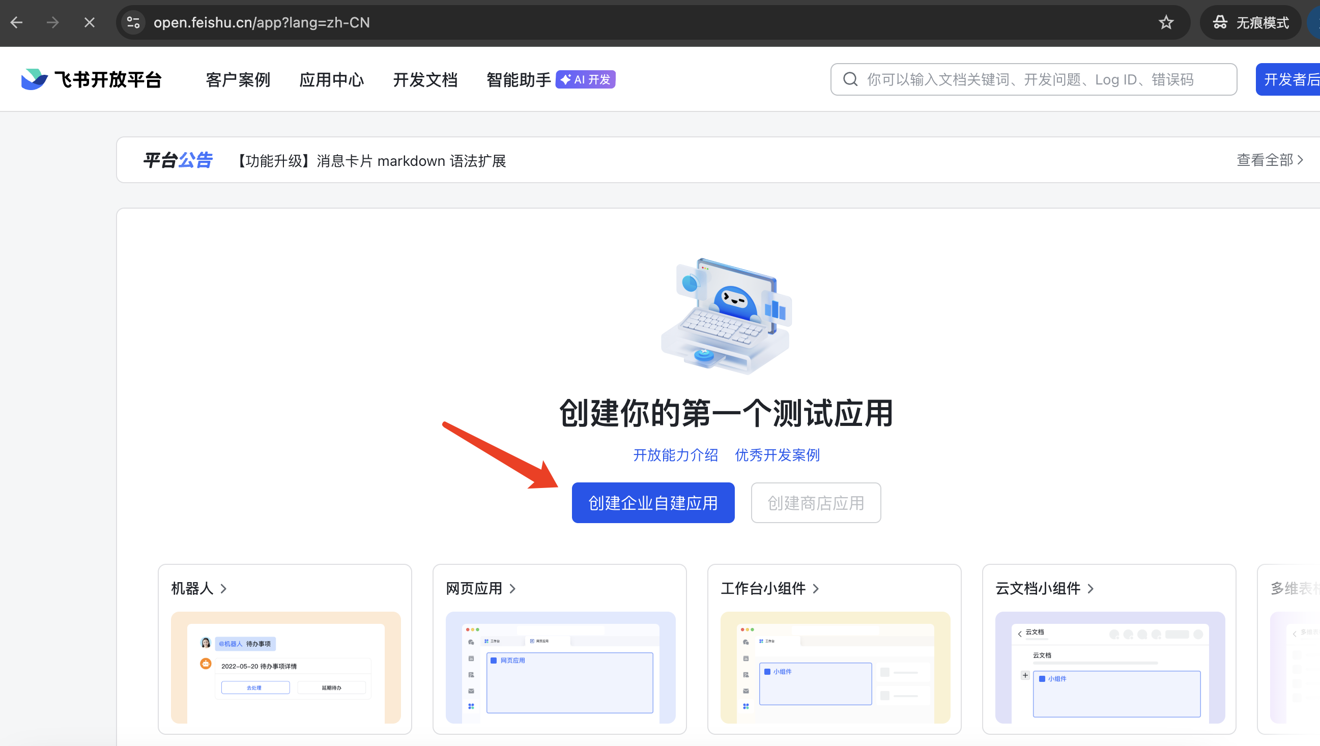2.1 创建飞书企业自建应用