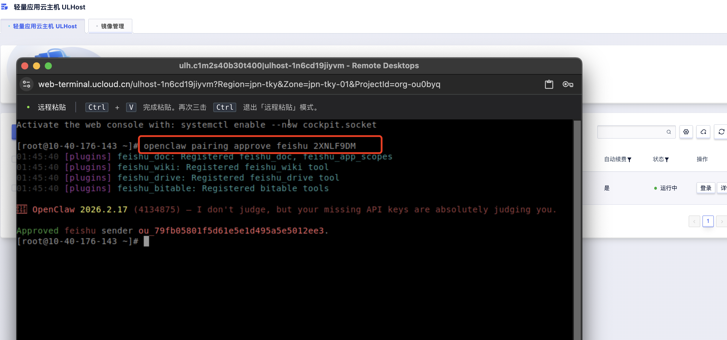 登录已部署OpenClaw的UCloud轻量应用云主机,按照以下步骤完成配置: